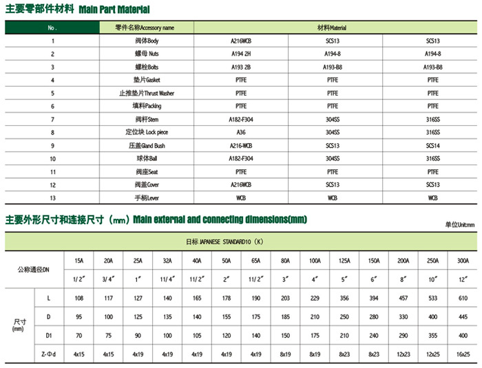 日標不銹鋼球閥結(jié)構(gòu)圖及參數(shù)表